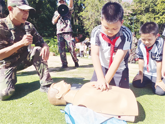 学校根据学生年龄特点开展了团队拓展、心肺复苏急救课堂、制作香囊、园林探秘等活动,激发他们探究自然、热爱自然的情感,培养团队精神和合作意识。