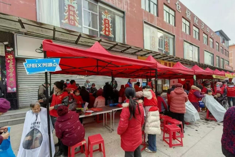 宝鸡市将文明实践与便民服务深度融合,把实实在在的温暖和帮助送到居民身边,精准对接群众诉求。在陈仓区虢镇街道社区实践站开办的爱心理发屋、幸福大食堂,则以远低于市场的价格为老人提供日常照料,一碗热气腾腾的饭菜解决了子女最牵挂的事。在金台区石油东山社区实践站举办的“心窝窝集市”上,义诊、义剪、家电维修等摊位前总是人头攒动。在凤翔区柳林镇汉封村实践站,服务融合了“文化年味”,不仅为困难群众送去米、油等生活物资,更邀请书法家书写春联,将美好的祝福与文化关怀一同送入农家,让温暖更富底蕴。