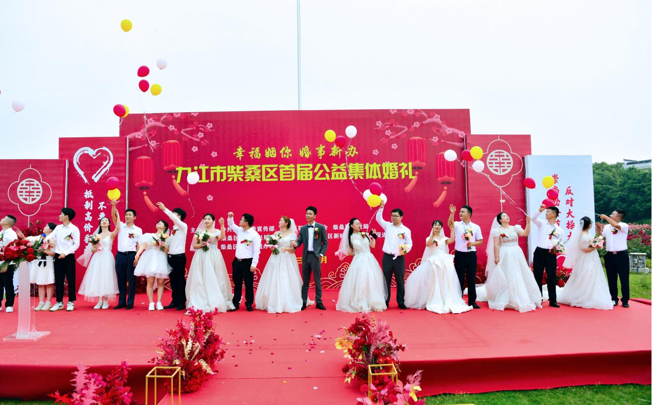 联盟村青年参加柴桑区首届移风易俗集体婚礼。杨风胜 摄