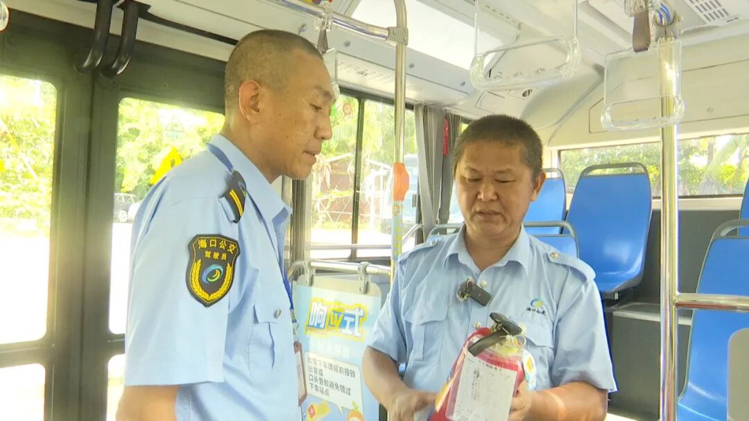 在海口公交世纪公园场站,刘筱杰正在与司机一起,按要求对即将发车的公交车进行检查。每次当班,他都会提前半小时到岗,认真做好车况车容车貌检查、驾驶员酒精检测等工作,把好行车安全关。